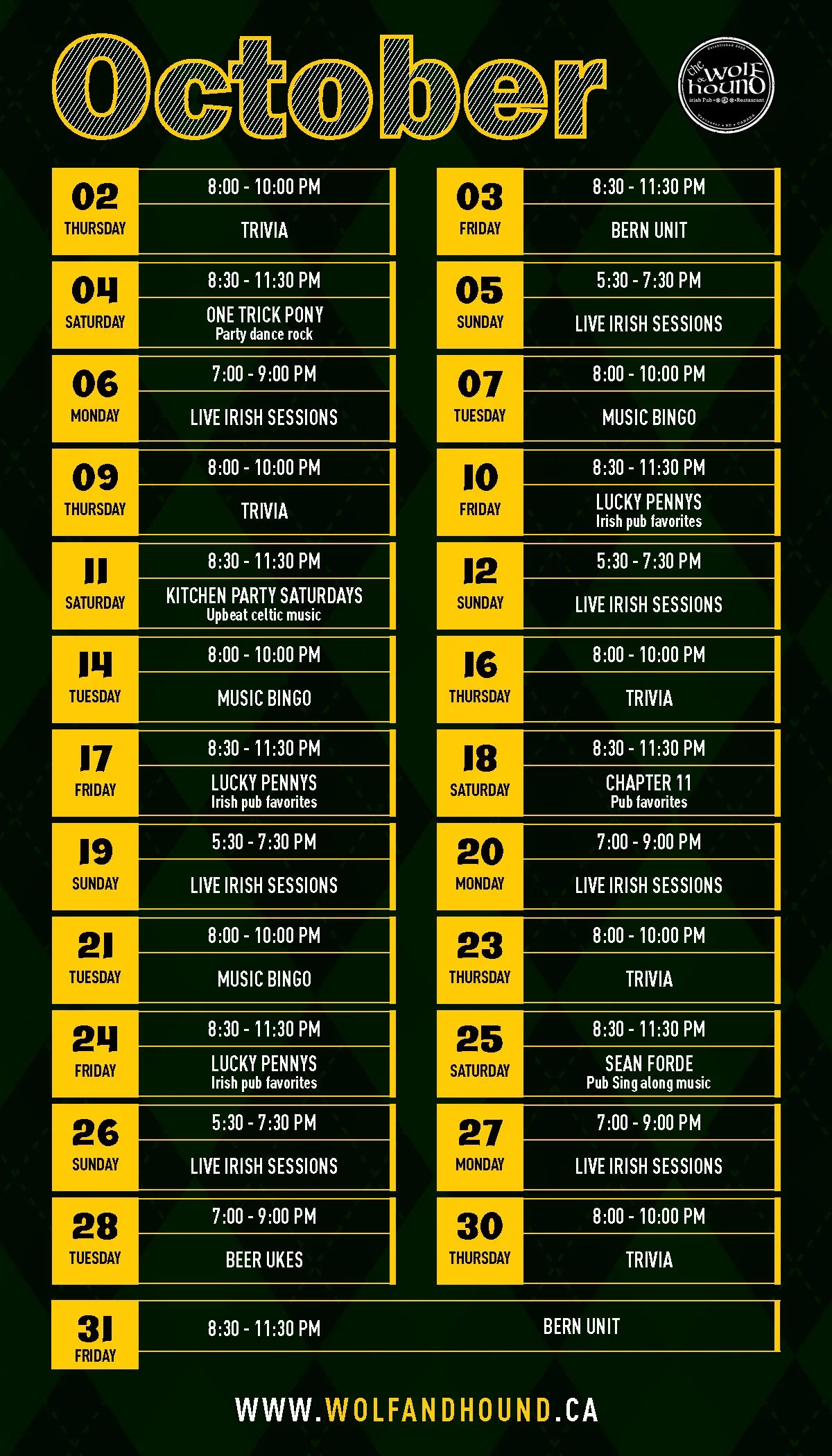 the Wolfhound. If you’re looking for a good place to hide from the yogis, hear some great Irish roots music and grab a few local craft brews, Wolf & Hound has you covered.